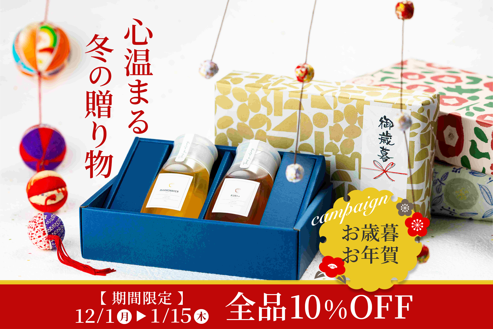 お歳暮やお年賀にぴったりの冬限定企画。大切な方への贈り物に、自然の恵みが詰まったはちみつを。12/1(月)~1/15(木)の期間中、全品10%OFFでお求めいただけます。
