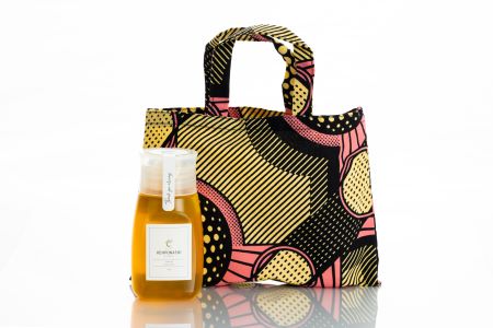 BEE CONNECTのハチミツを手に取った方にも、そんな明るくハッピーな気持ちを届けたいと言う想いから、アフリカ布(チテンゲ)を使ったラッピングをご用意しました。